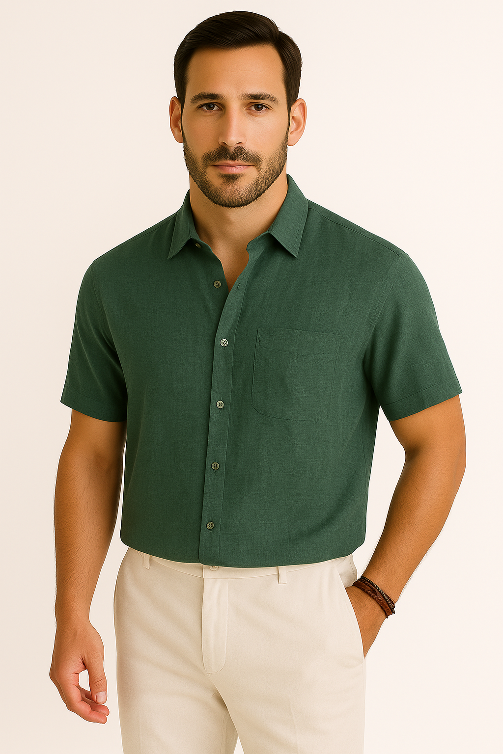 Denne kortermede skjorten har en lett og avslappet passform og er det perfekte valget for varme og elegante dager. Den er laget av naturmateriale som gir en uovertruffen følelse av friskhet og komfort. Den minimalistiske designen med klassisk krage og knappelukning foran gjør den til et allsidig plagg som passer både til en uformell look og til mer raffinerte anledninger.