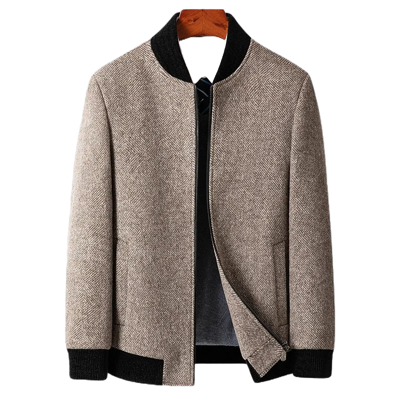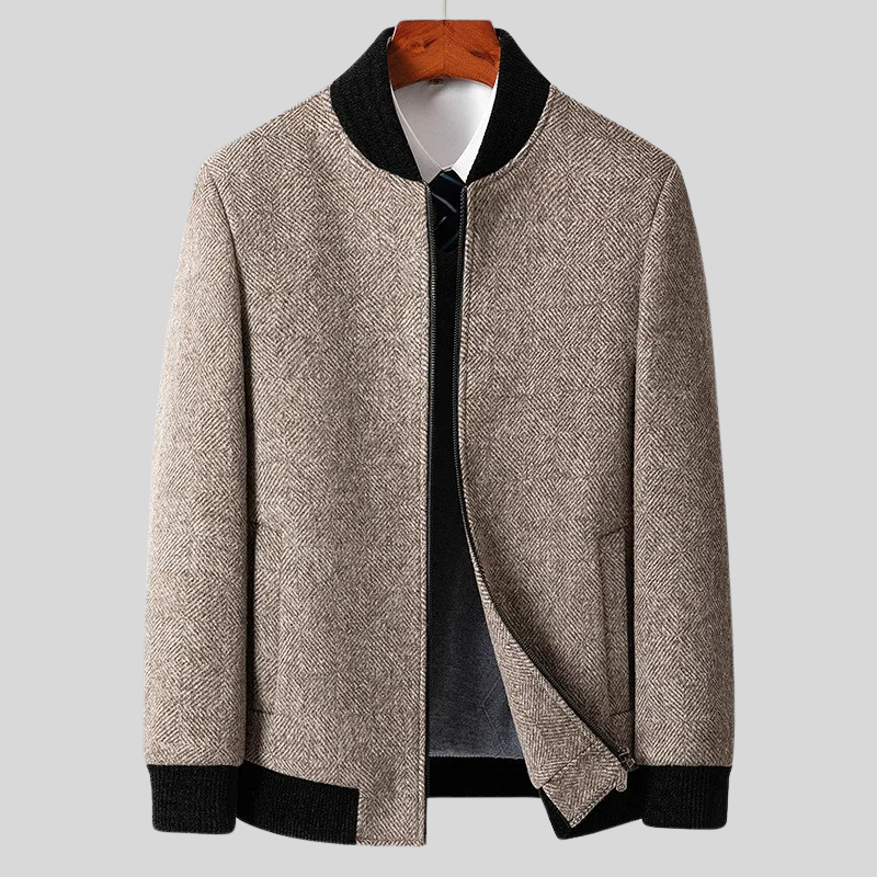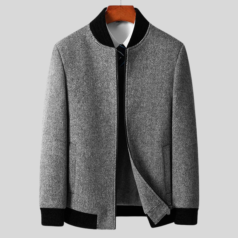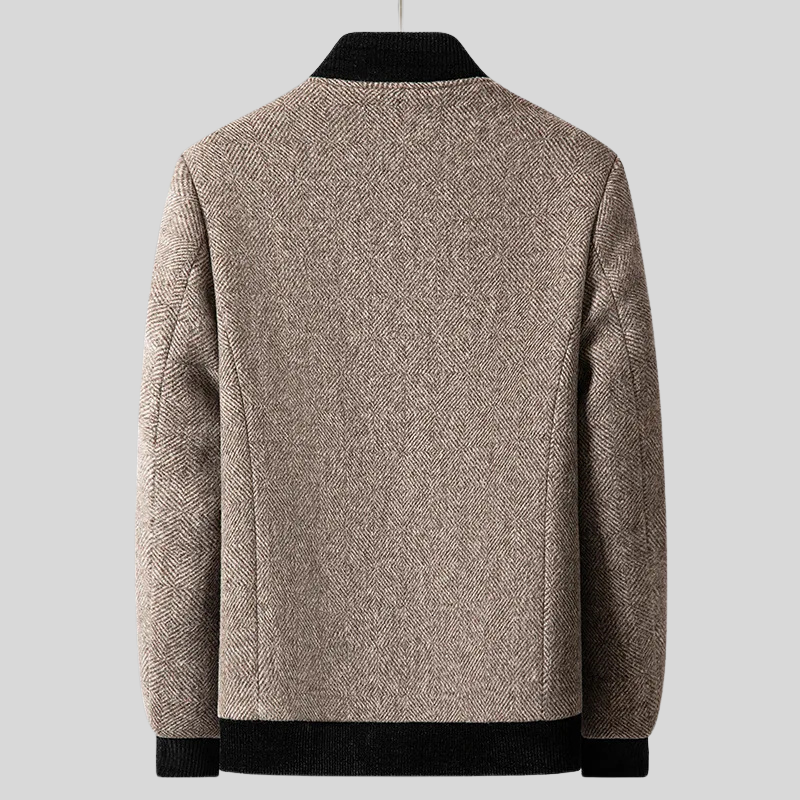 Det klassiske herringbone-mønsteret gir denne jakken en elegant og tidløs stil som aldri går av moten.